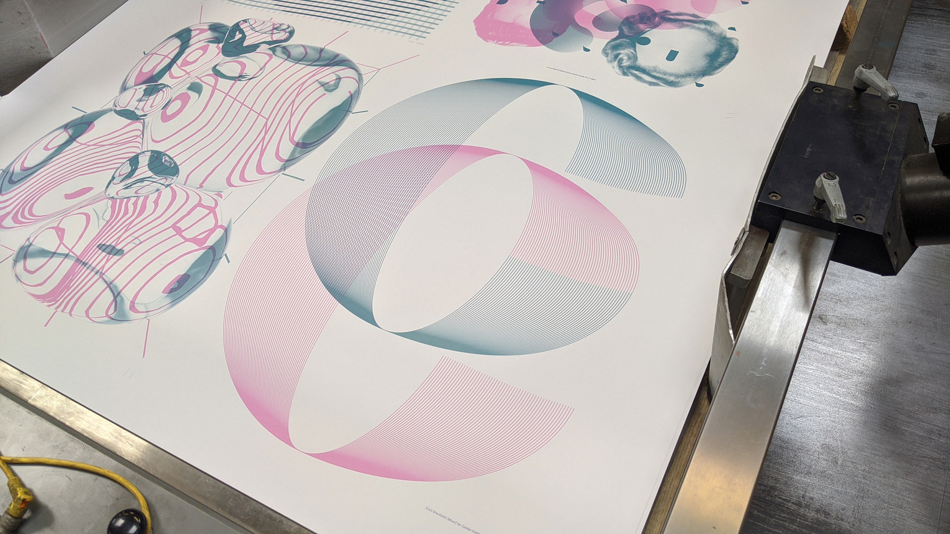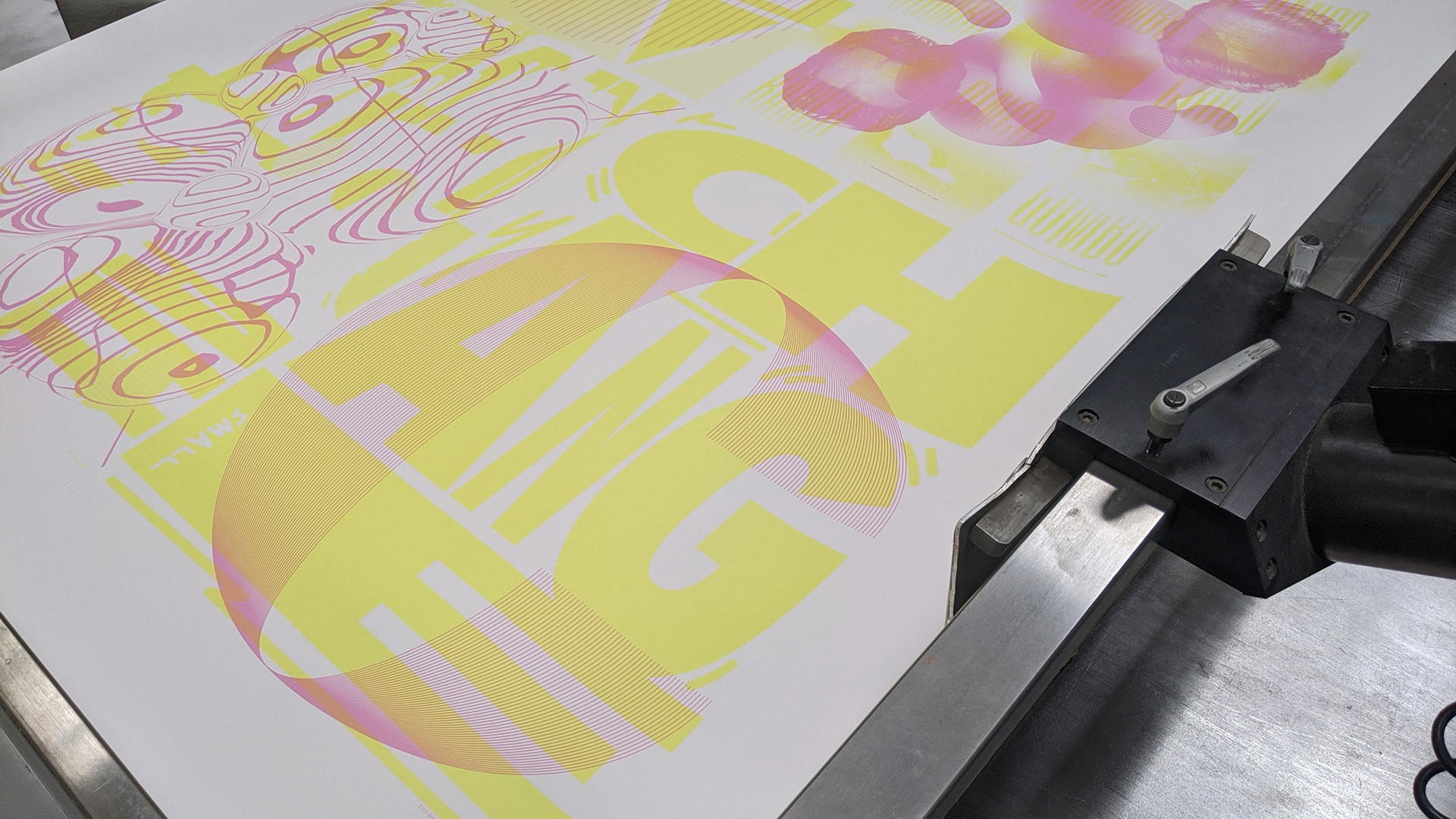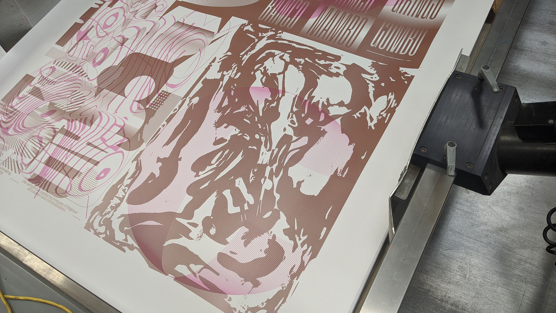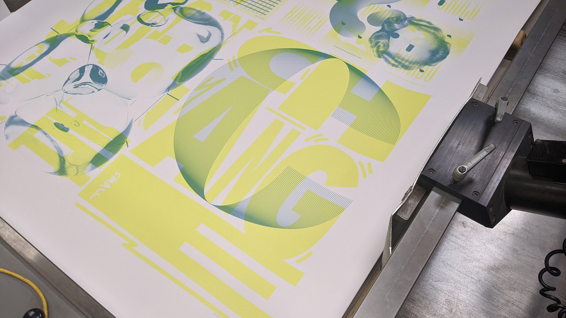 Poster for Combo Combo No. 3. A festive exhibition in Lille (North of France) about posters made for the occasion by eight invited graphic designers from France and around the world. All the posters were printed in silkscreen at Lézard Graphique and combined with each other.