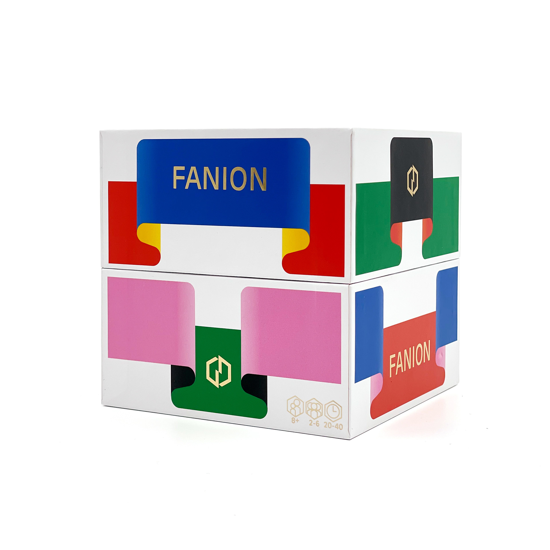 Full design for the the fourth card game published by Game Division. It combines elegant design with a surprisingly multi-layered game concept. For this, a unique appearance had to be created within the existing visual world of Game Division, which would be completely different from the previous games, but would still fit in harmoniously. This time it was intended to be more classic, in keeping with the name "Fanion" (little flag). The design is dominated by banners and symmetries; even with gold foil embossing for the title. However, the use of the entire colour scheme found on the playing cards deliberately breaks this up to some degree.