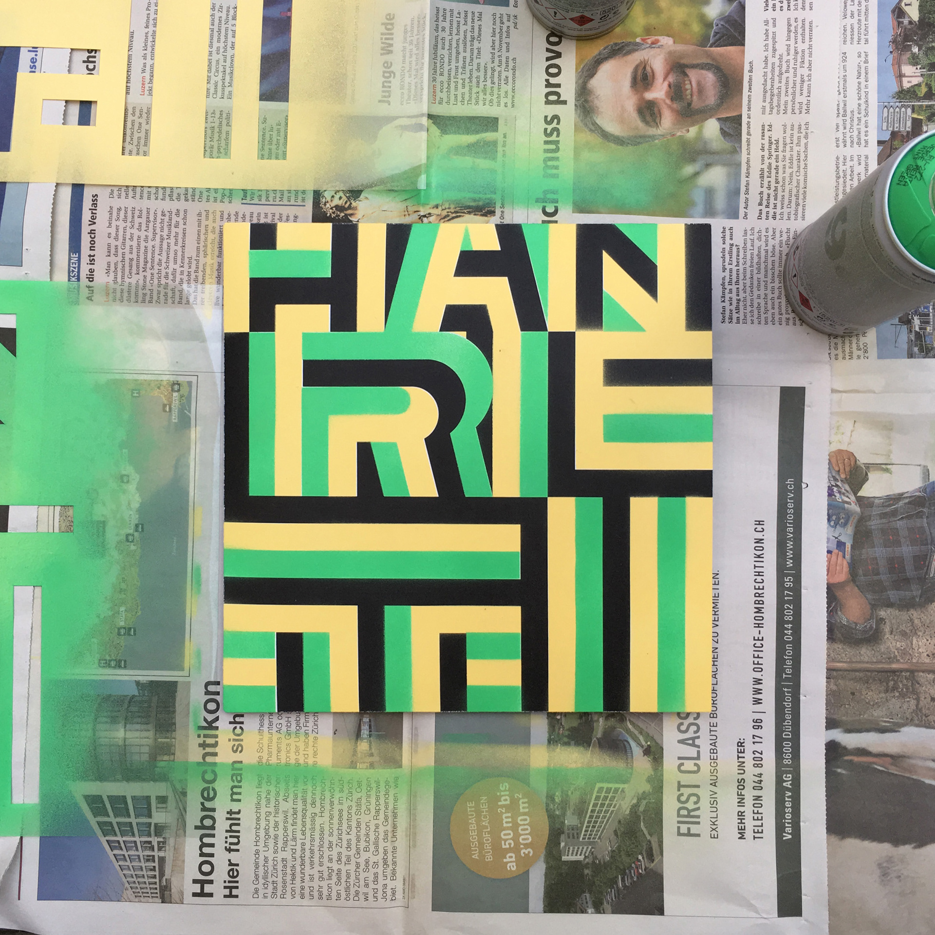 Hand-sprayed LP cover and poster for Hanreti's album Cuetrigger. Available on www.smarturl.it/hanreti2
