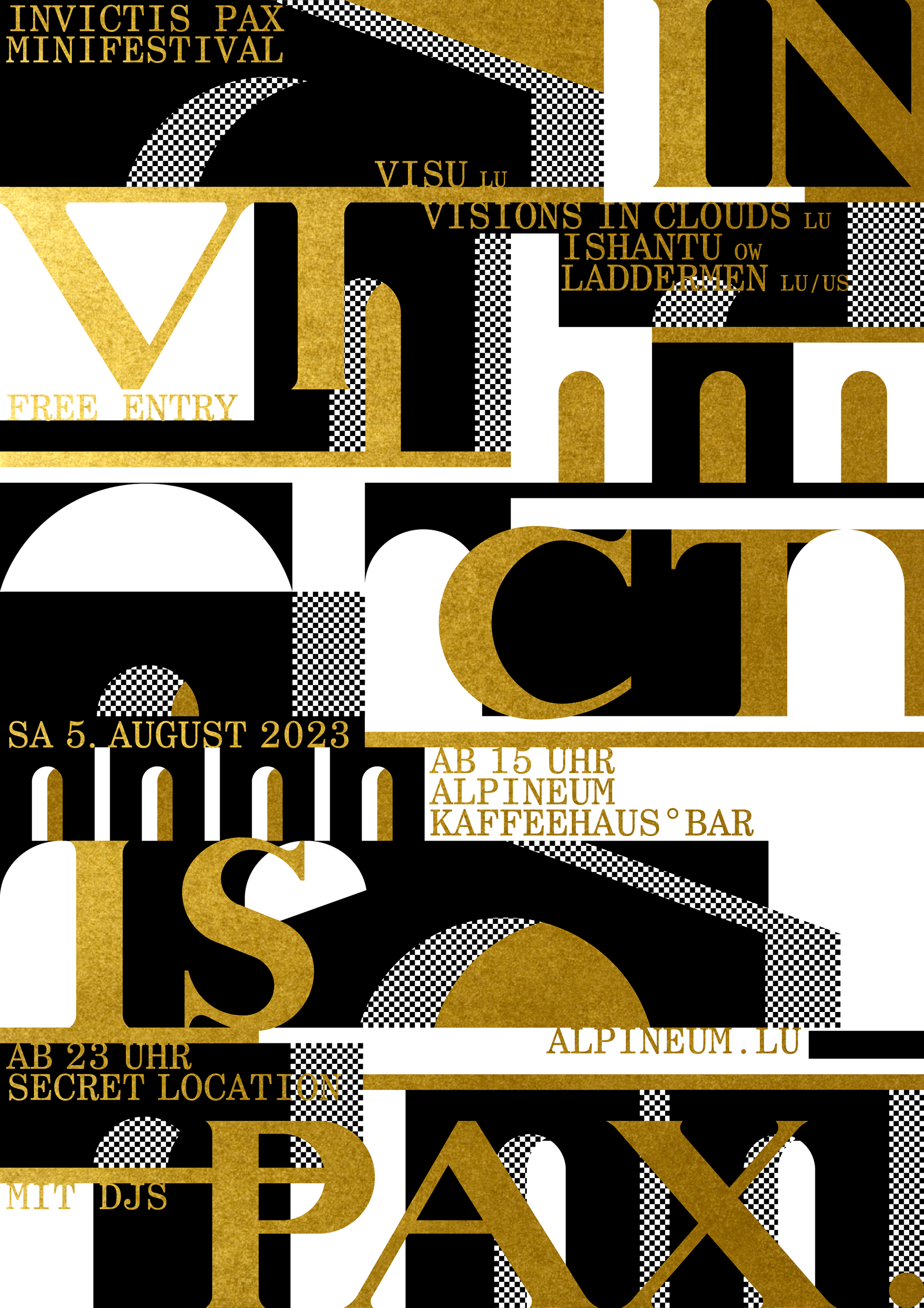 Poster for the annual Invictis Pax Minifestival in Lucerne. In Collaboration with Jasmina Zarlenga