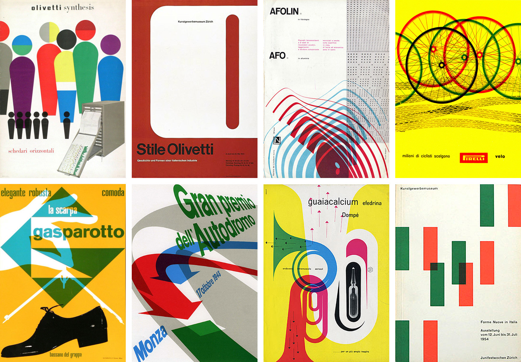 Homage to Italian Graphic Design based on posters by Walter Ballmer, Studio Boggeri, Franco Grignani, Max Huber, Bob Noorda, Carlo Vivarelli & Heinz Waibl