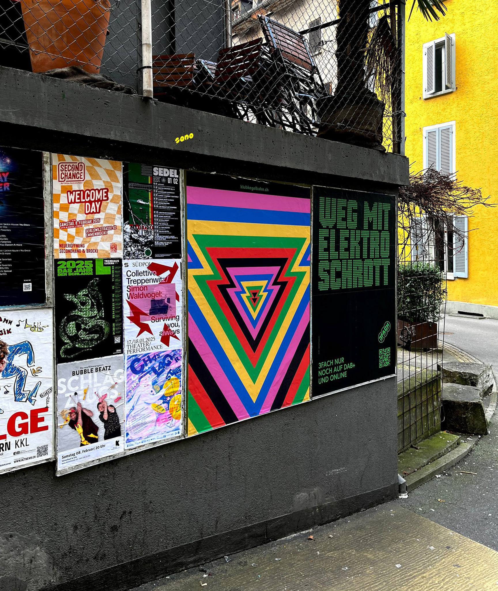Poster and moving poster for the monthly program in January for the techno club "Klub Kegelbahn" in Lucerne, Switzerland