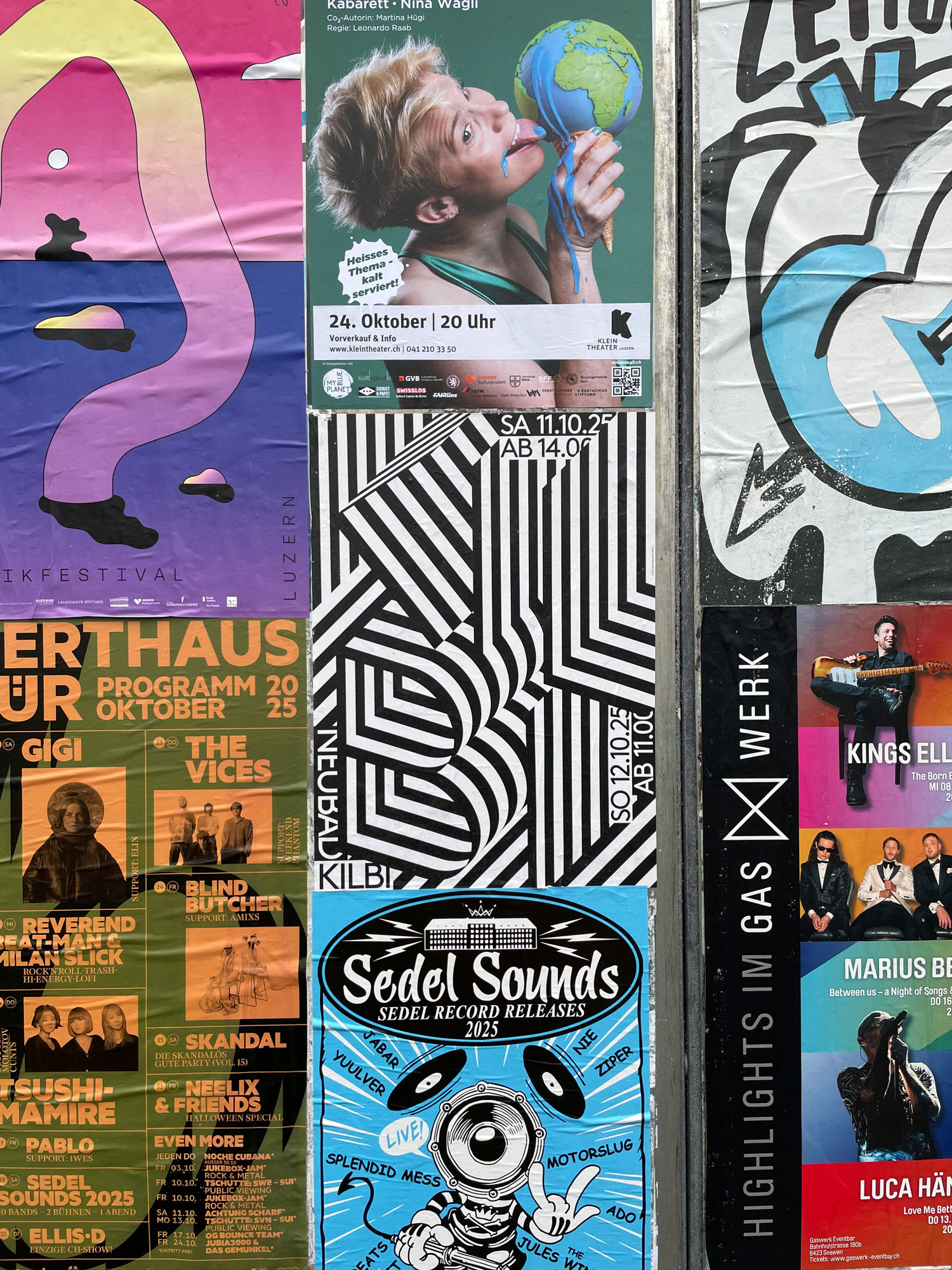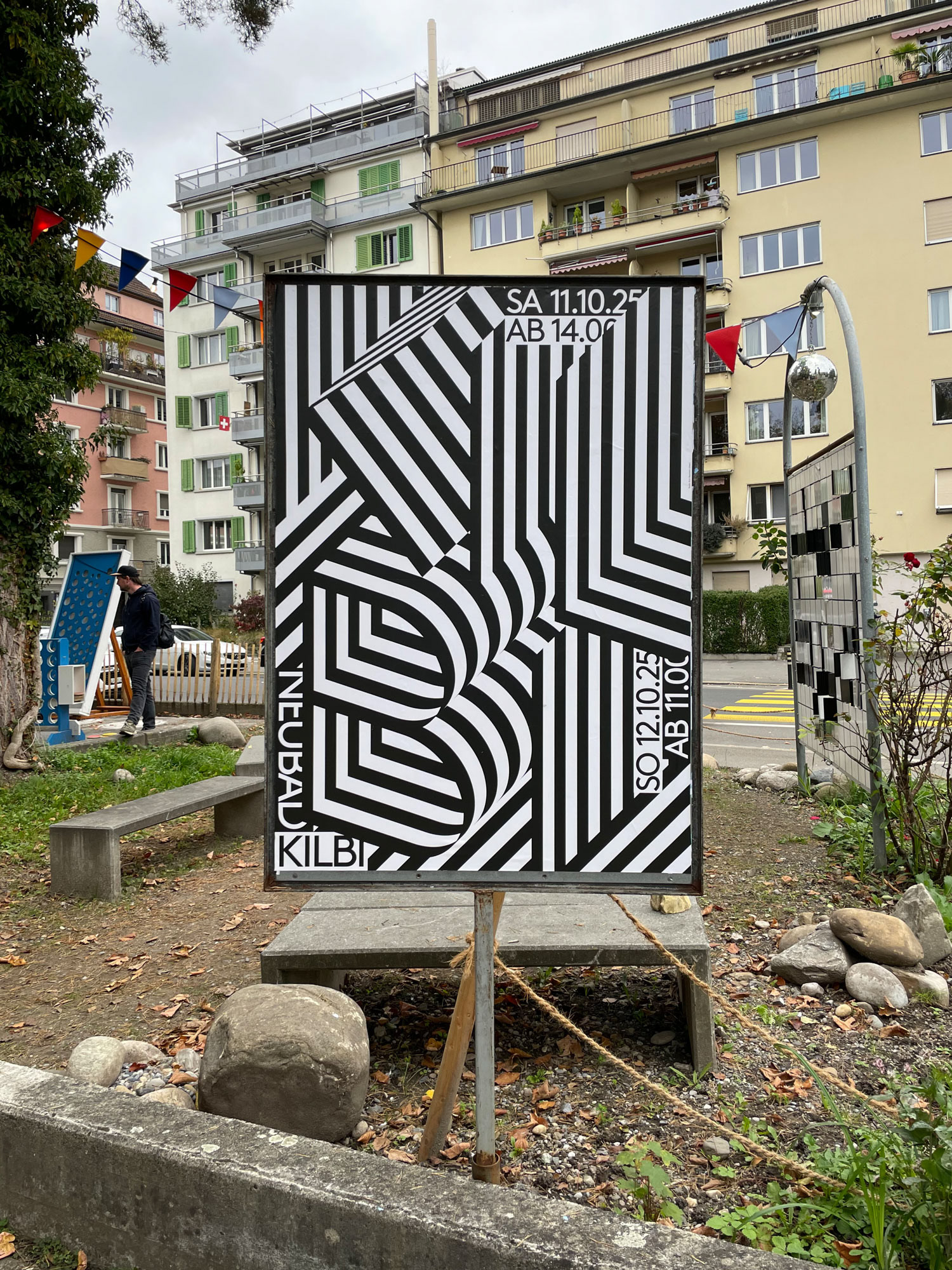 Poster announcing the annual funfair at the Neubad, to celebrate the 12th anniversary of the cultural interim use of the former municipal indoor swimming pool in Lucerne.