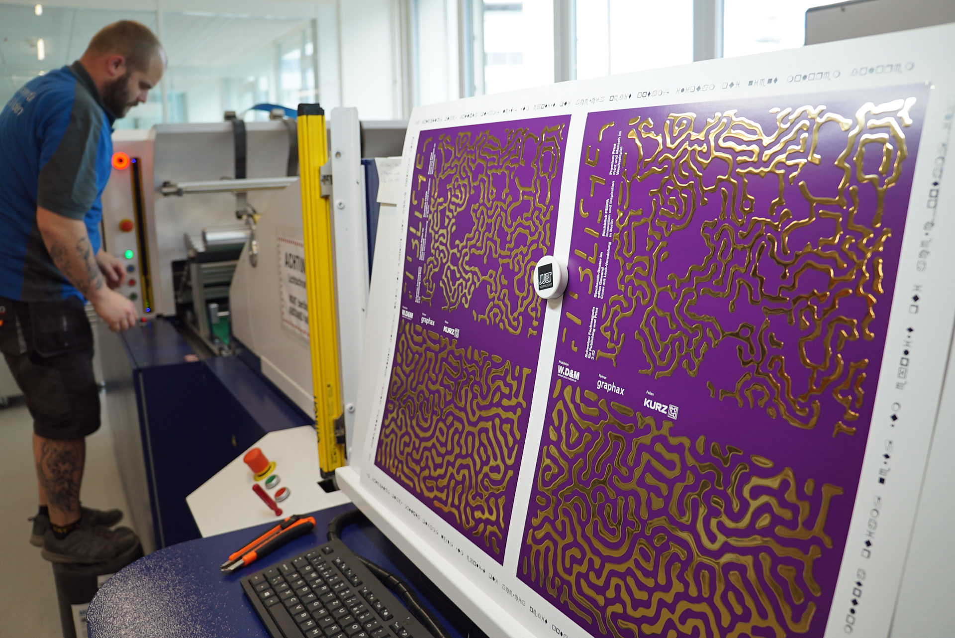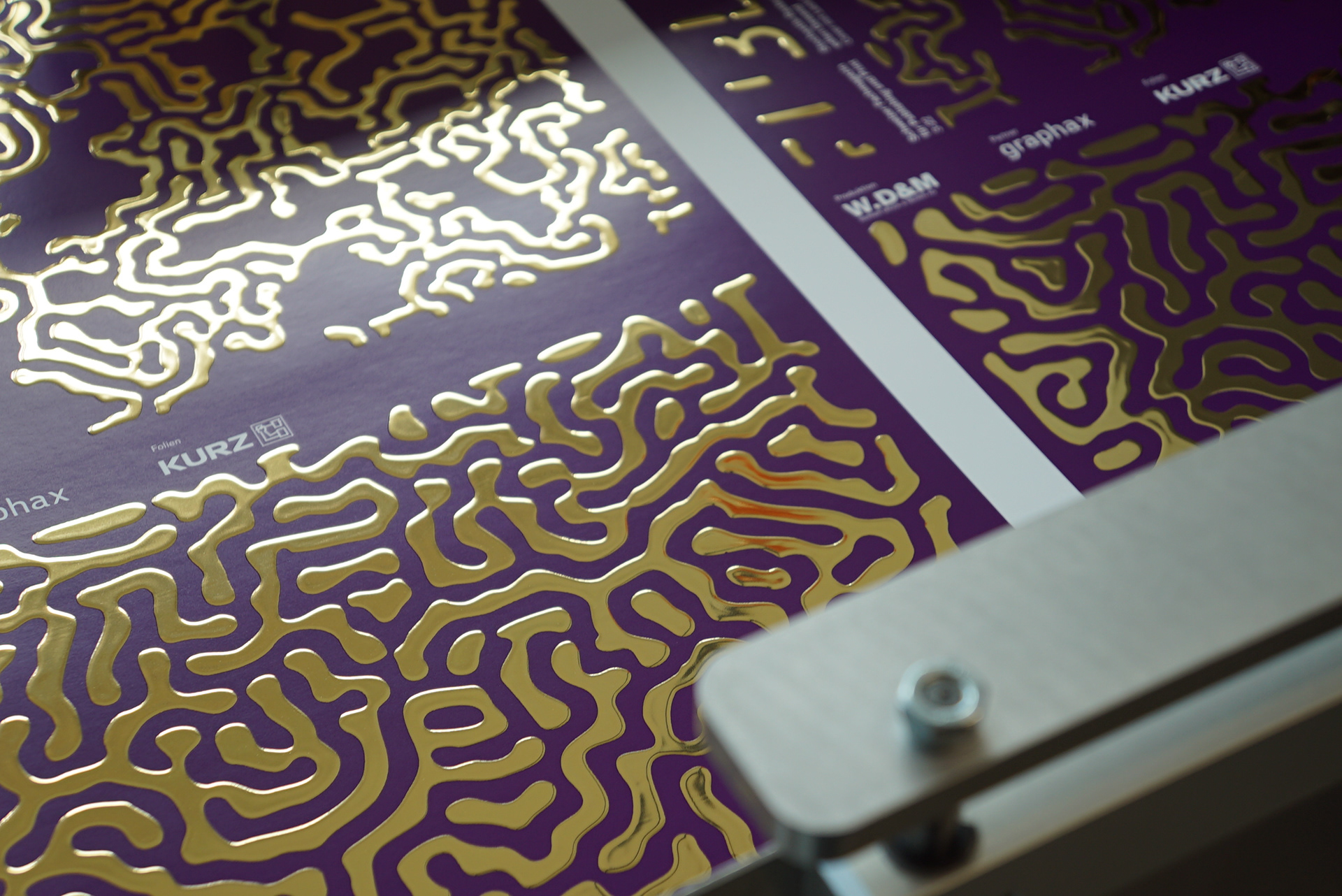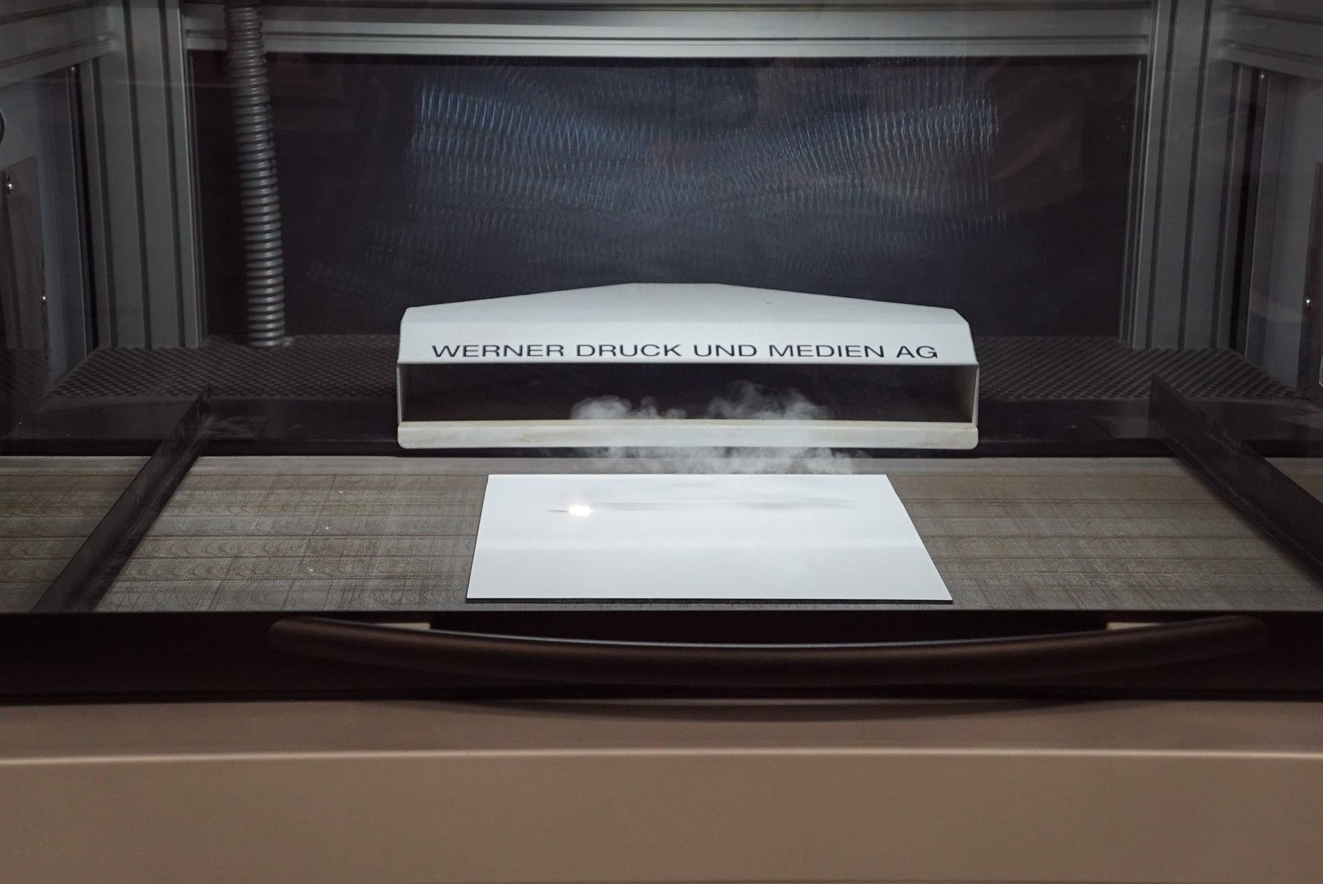 Cover for the leading Swiss trade journal for publishing and print. Digitally printed at Werner Druck & Medien using gold foils by Kurz Folien and hispeed lasercut.