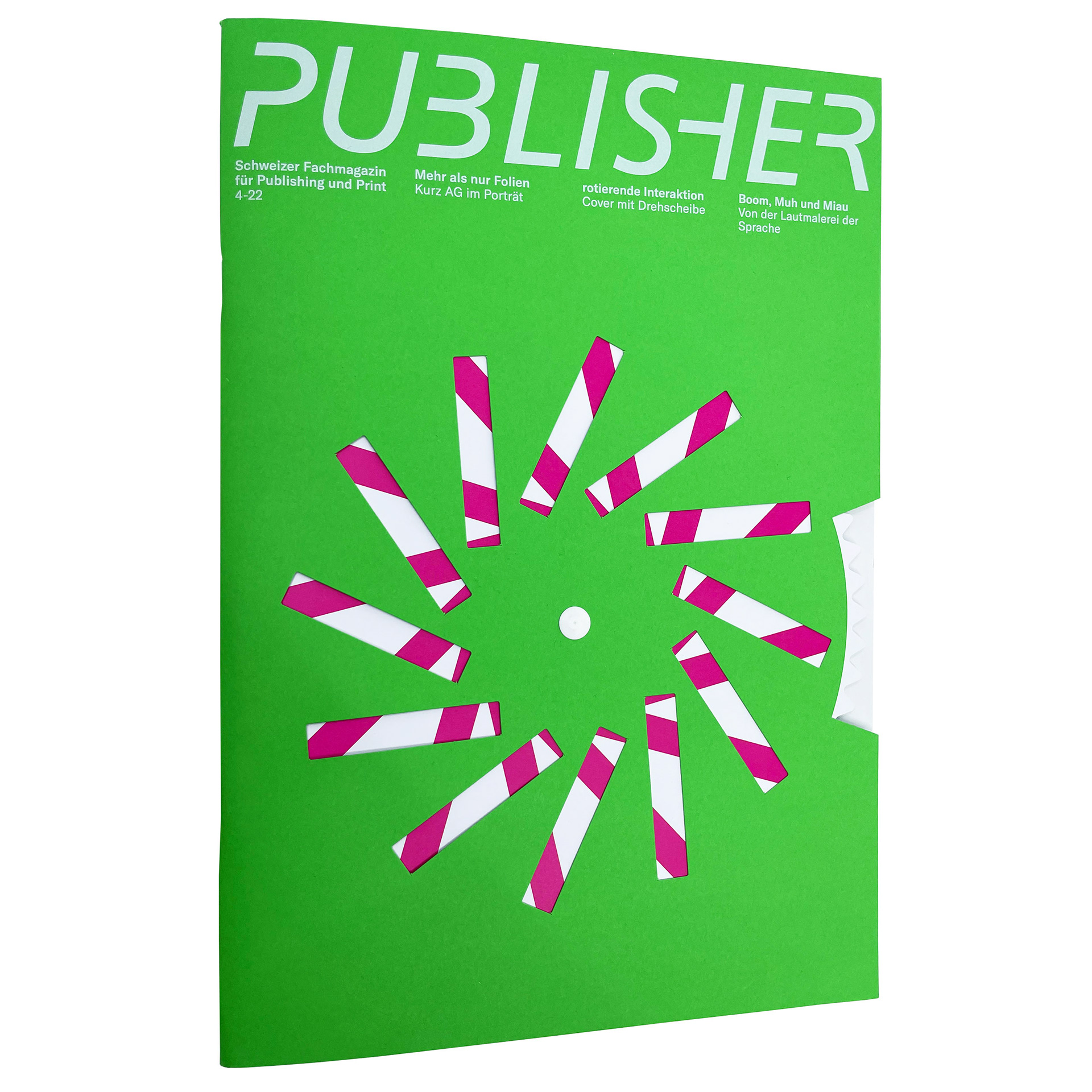 Analogue moving cover for the leading Swiss trade journal for publishing and print. Printed and assembled at Brüggli Medien, Romanshorn.