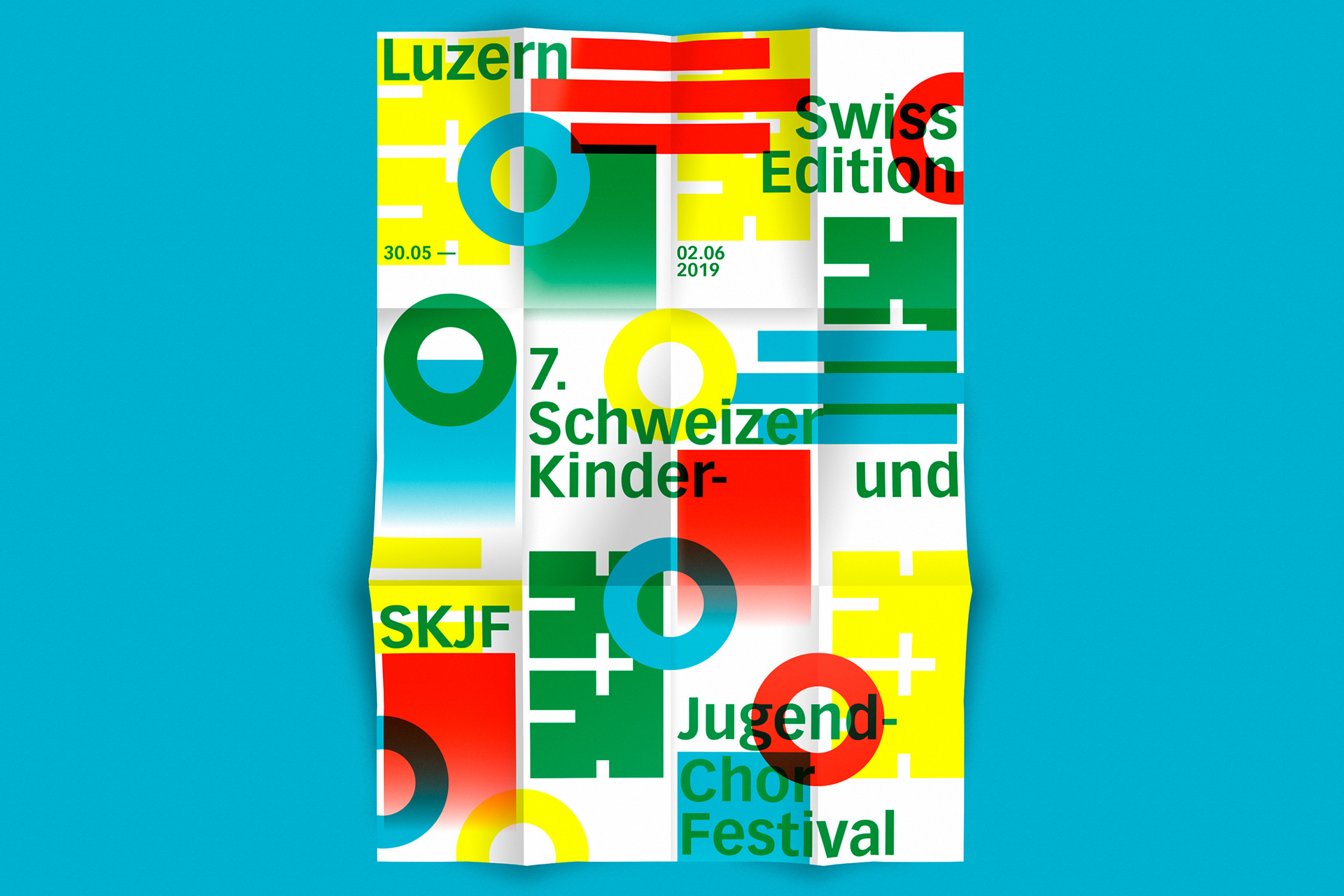 Poster and design concept for the Swiss Children and Youth Choir Festival in Lucerne. In collaboration with Loana Boppart