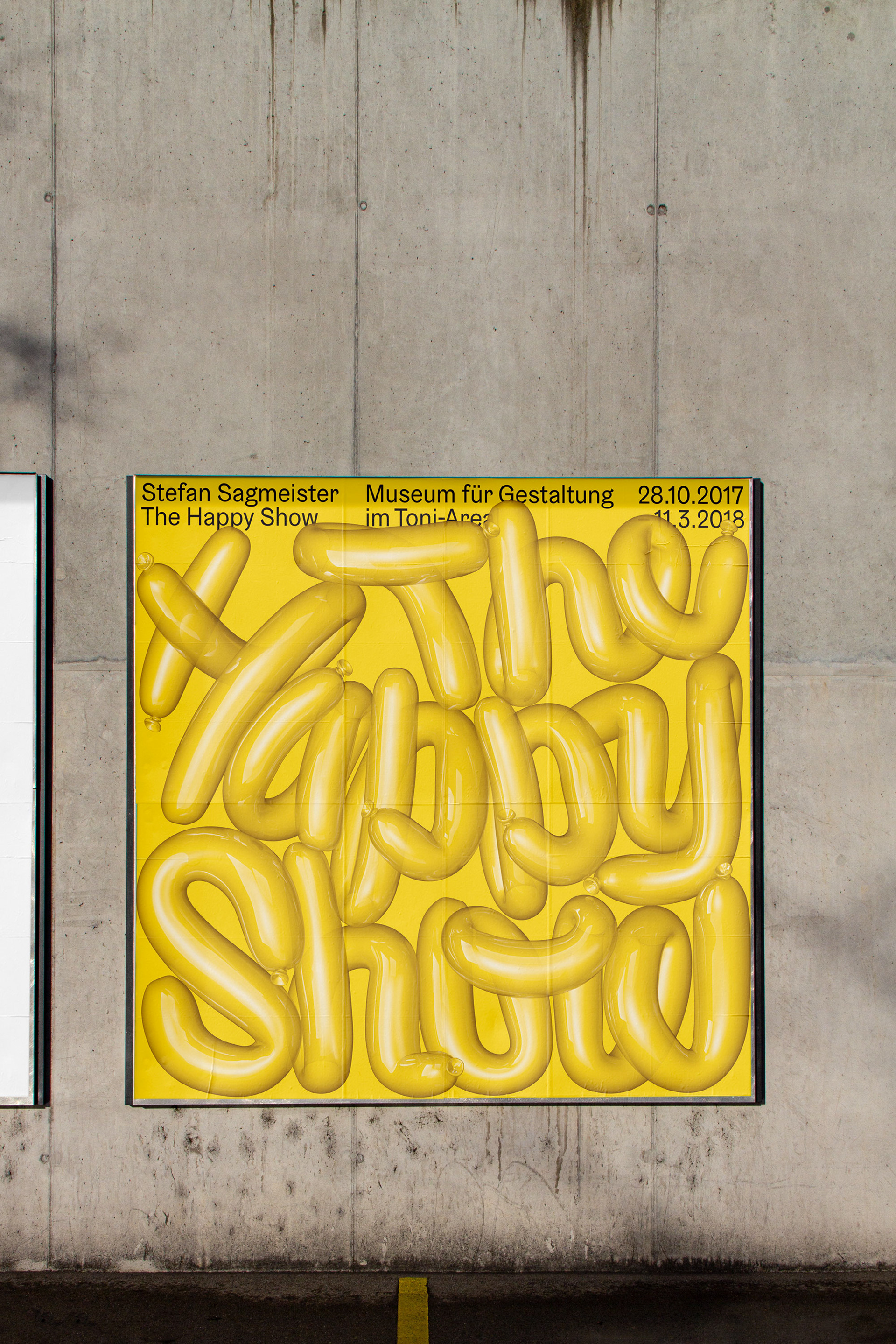 Poster for the Museum of Design Zurich that exhibits Stefan Sagmeister's Happy Show