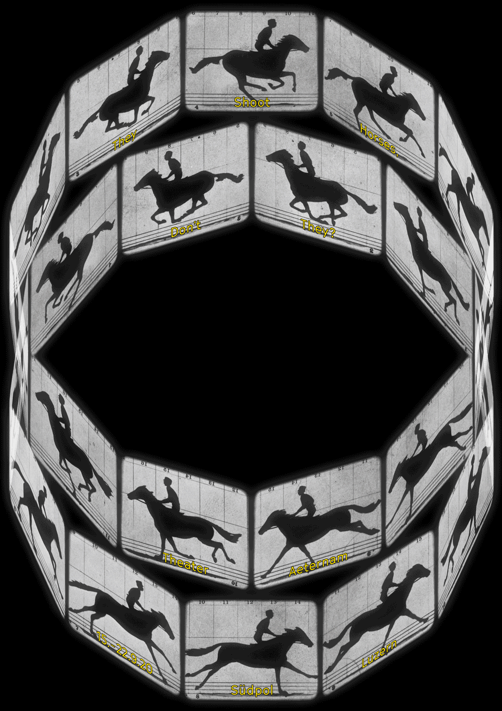Theatre poster for a new interpretation of Horace McCoy's classic novel. (based on the photographic studies by Eadweard Muybridge from 1878)