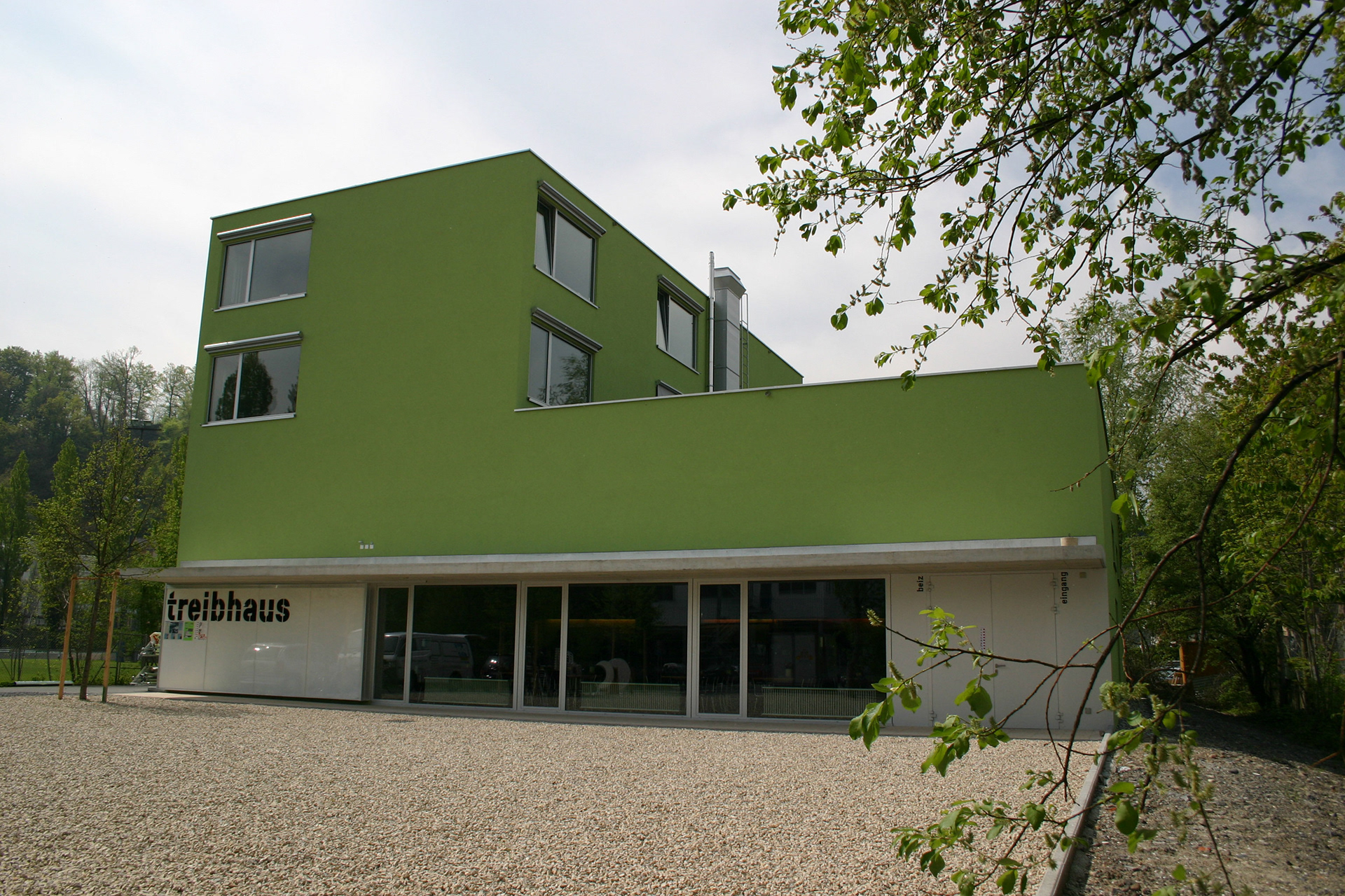 Signage of the new youth center Treibhaus in Lucerne. Architecture: Hanspeter Rusch, Production Management: Domeisen Visual