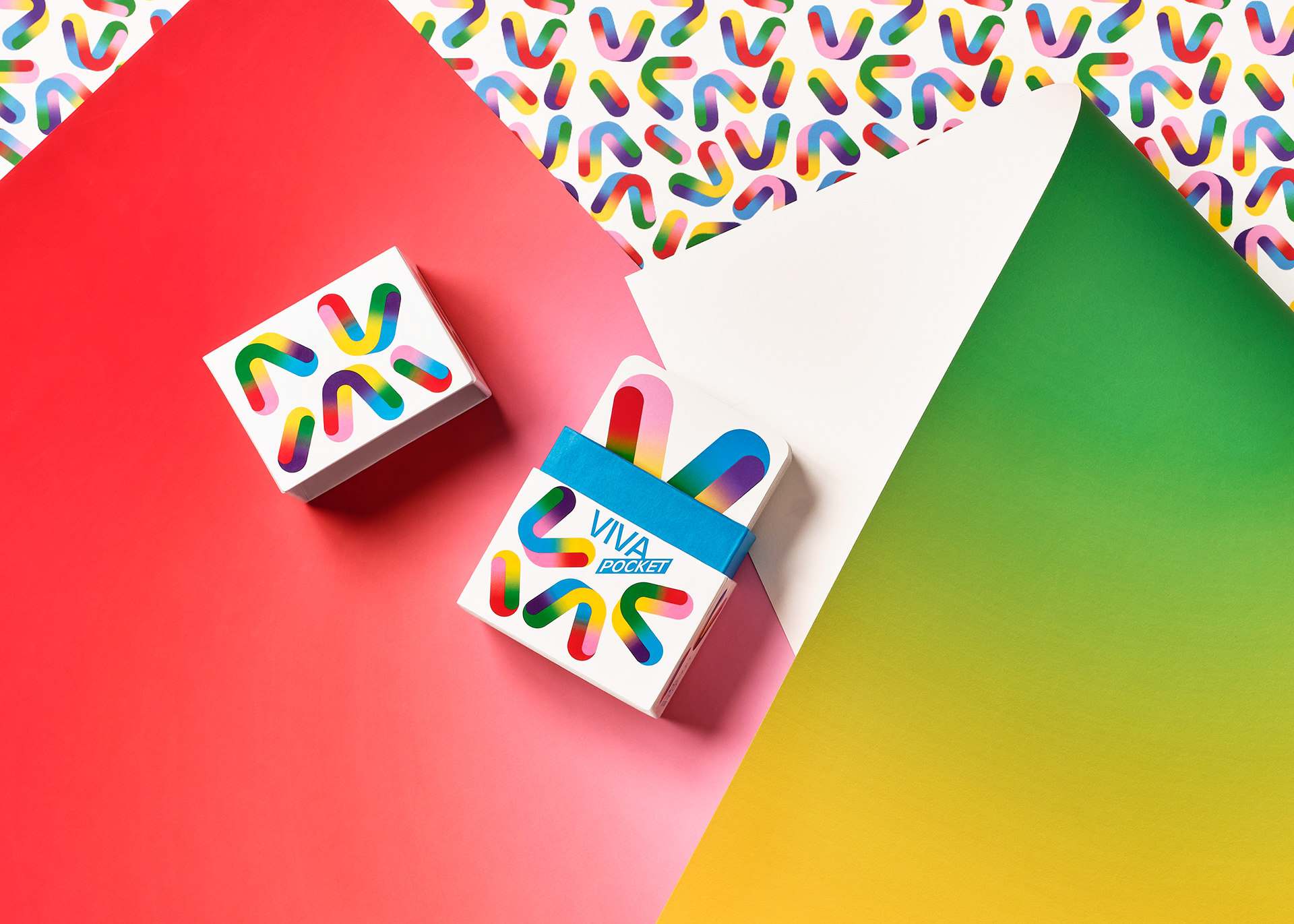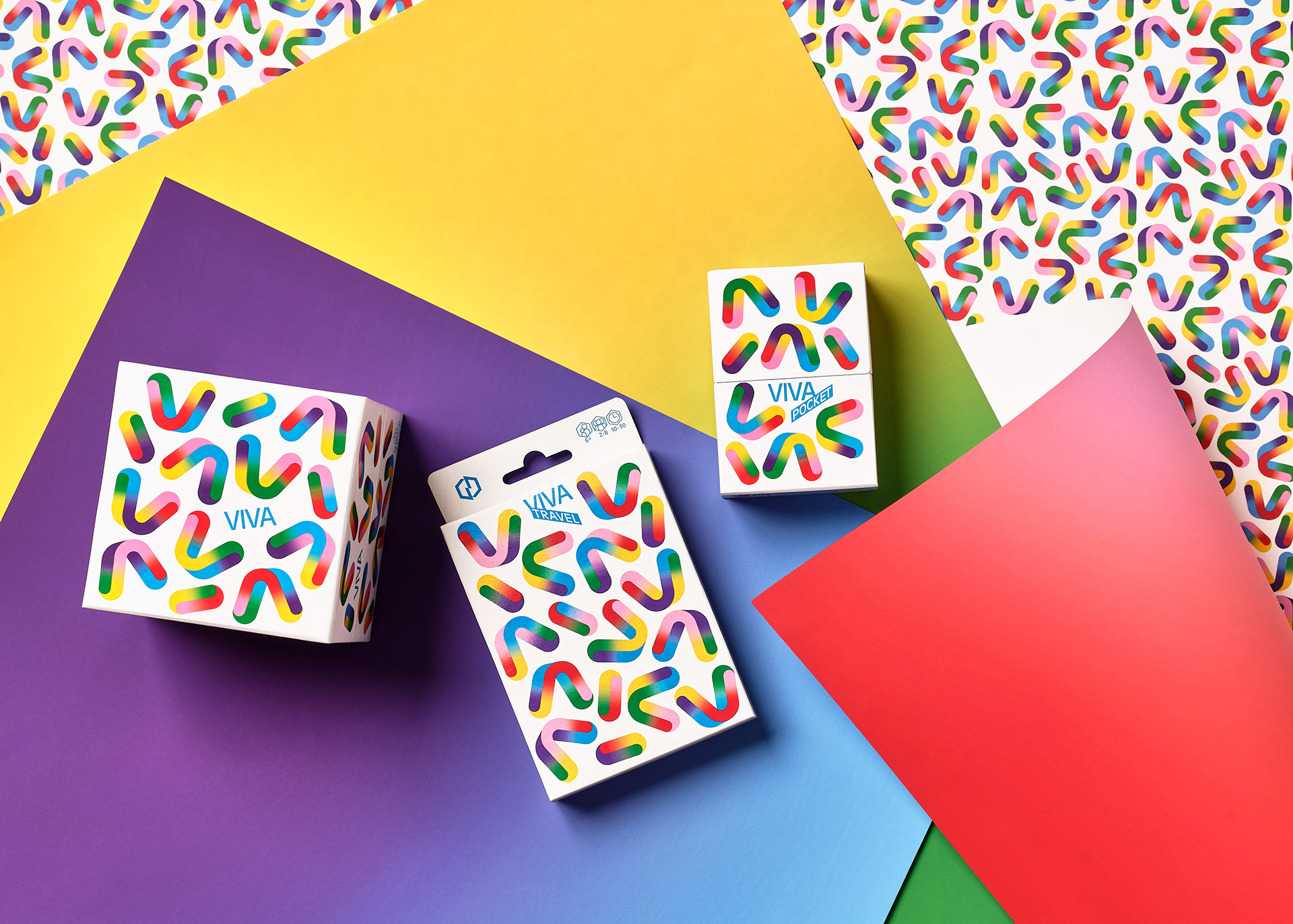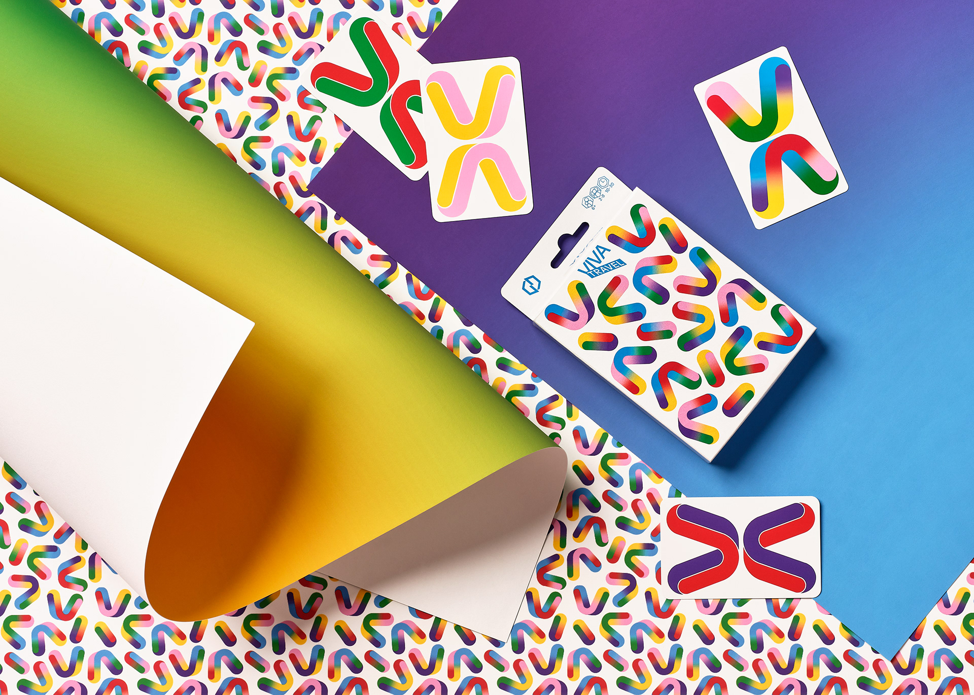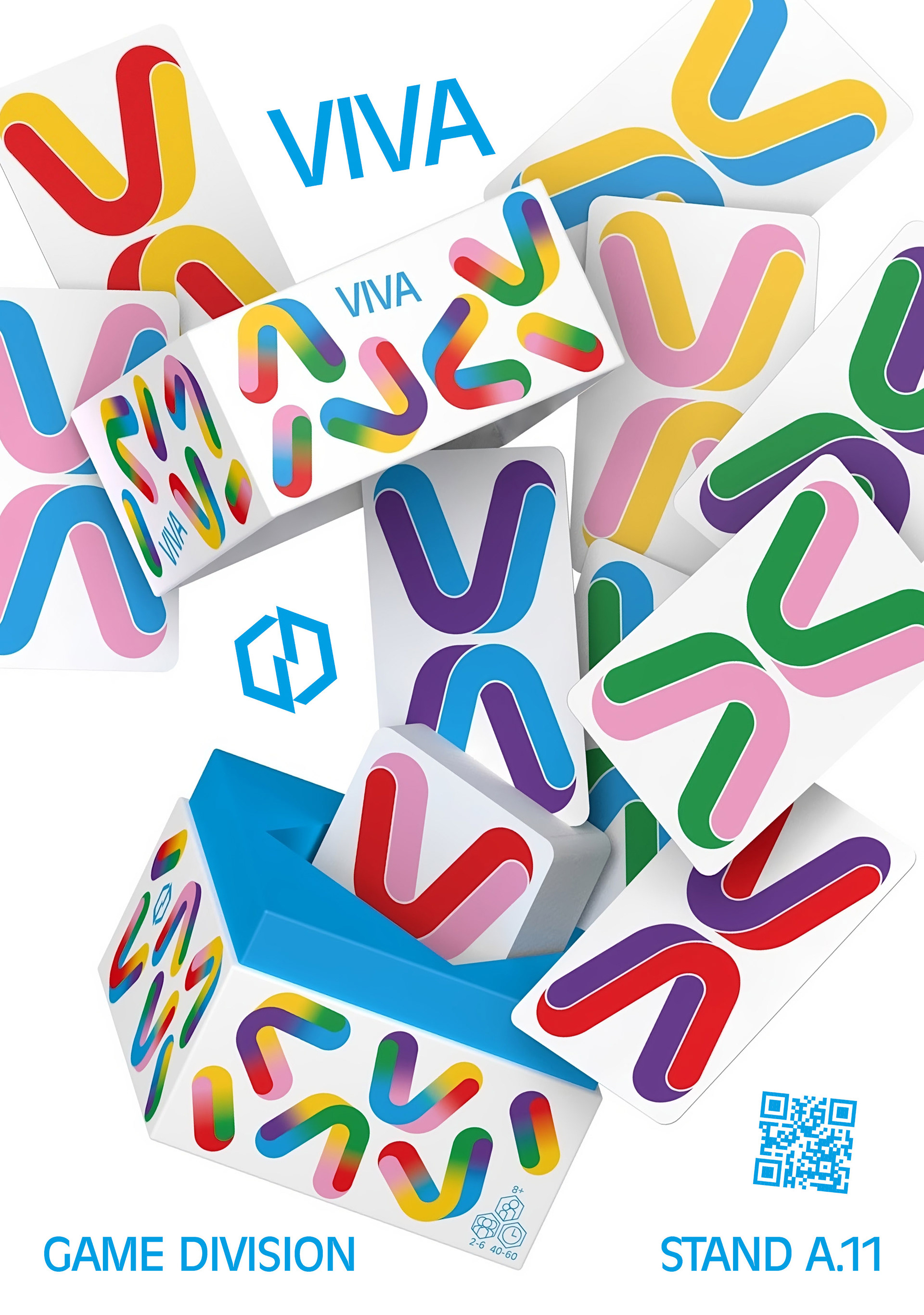 Full design for the third card game published by Game Division. It combines minimalist design with a surprisingly complex game concept. For this, a new brand of its own had to be created within the already existing visual world of Game Division, which can be recognised consistently and instantly. The centrepiece is the design of the game card. Since it must be possible to hold it in the player's hand, the respective colour combination should be immediately visible in all four corners. The two intertwined colours form a V and an A, whereby the name of the game can be derived immediately. This colourfulness of the cards should also be reflected on the packaging and other applications. The implementation with colour gradients raises the basic shape to a new level, making the various adaptations feel very playful but not childish.