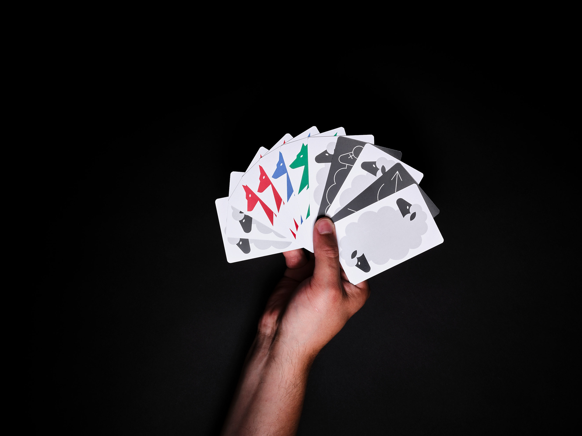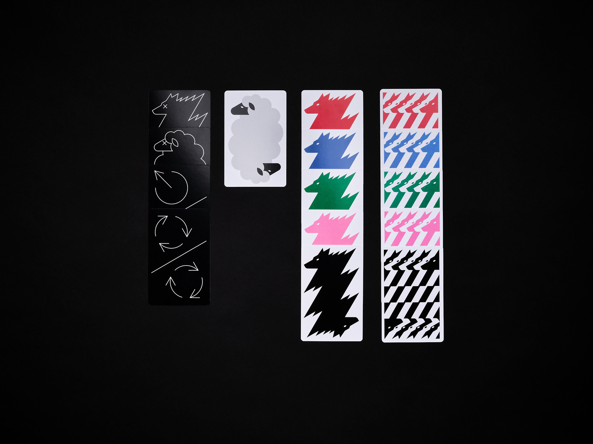 Full design for the first card game published by Game Division. The game is designed to be played very quickly. The design meets this requirement by using cards that are as easy to distinguish as possible. On the one hand, there are the main cards with the sheep and wolves, which appear flat on a white background. And on the other hand there are the action cards, which are shown linearly on a black background. Of course, care has also been taken to ensure that none of the cards has a clear top or bottom. Both on the front and on the back. The packaging design is also realised in a very high quality. The three compartments show the new player the three different cards right from the start.