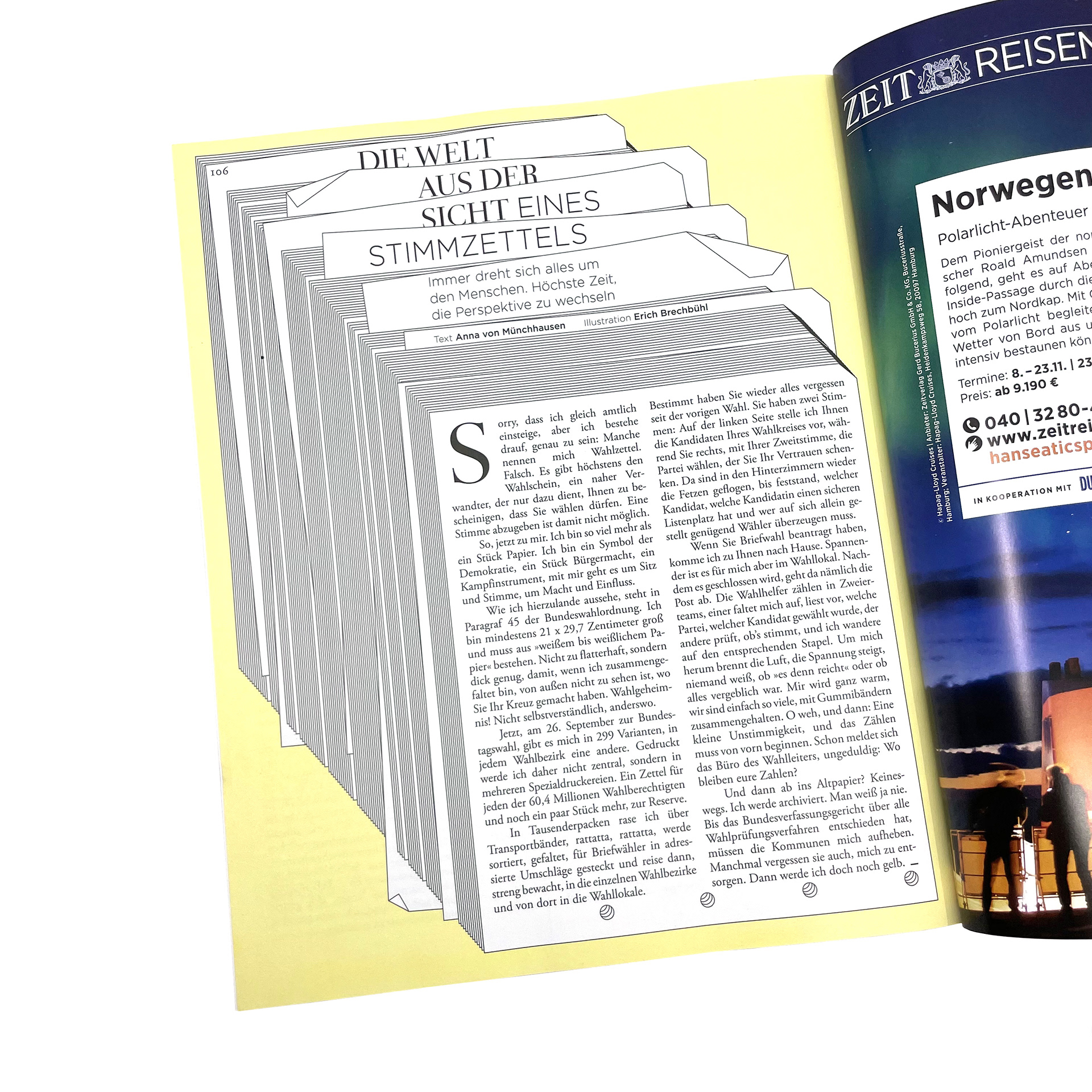 Illustration on behalf of Zeit Wissen for a text by Anna von Münchhausen entitled "The world from the perspective of a ballot paper".