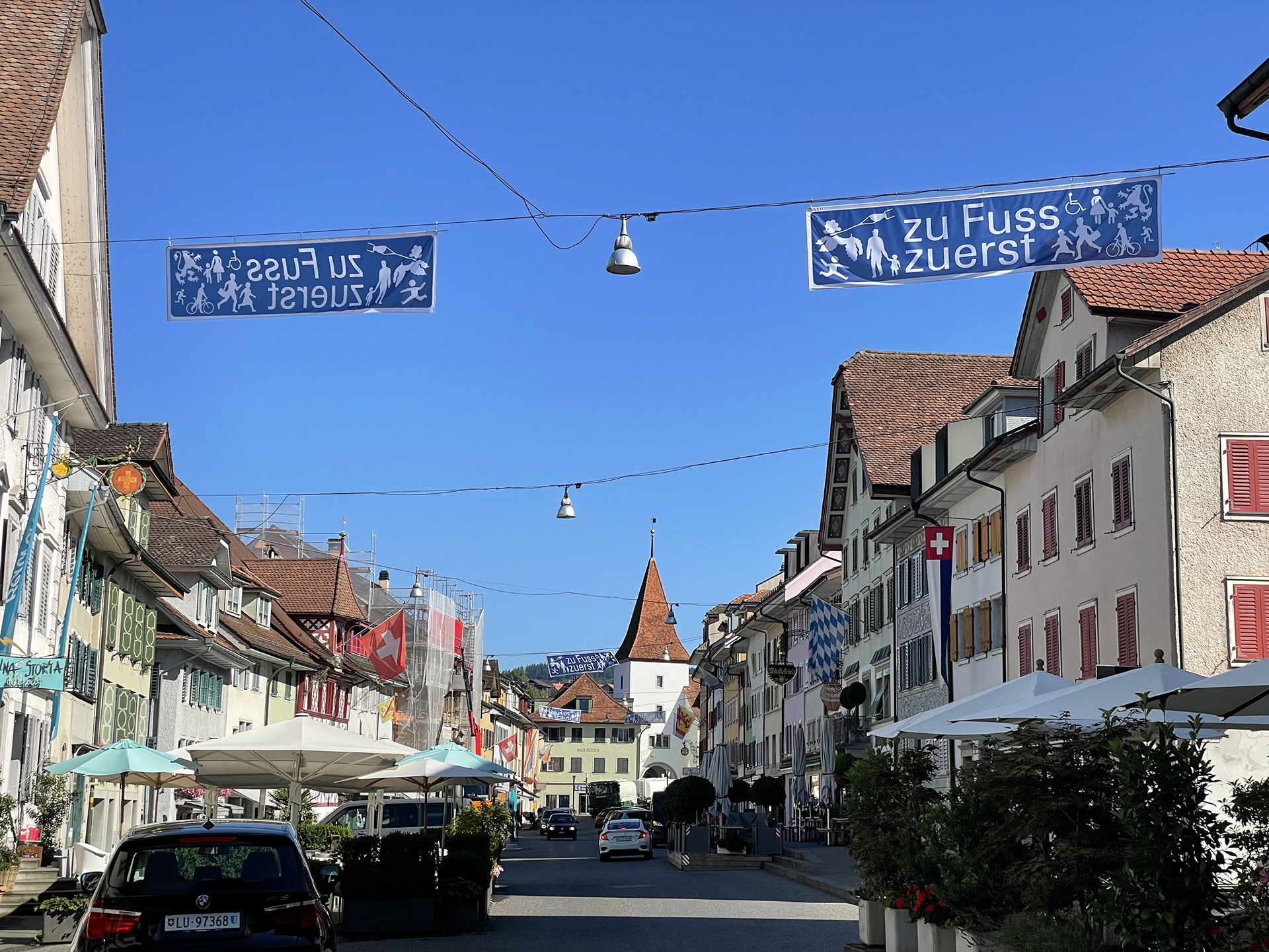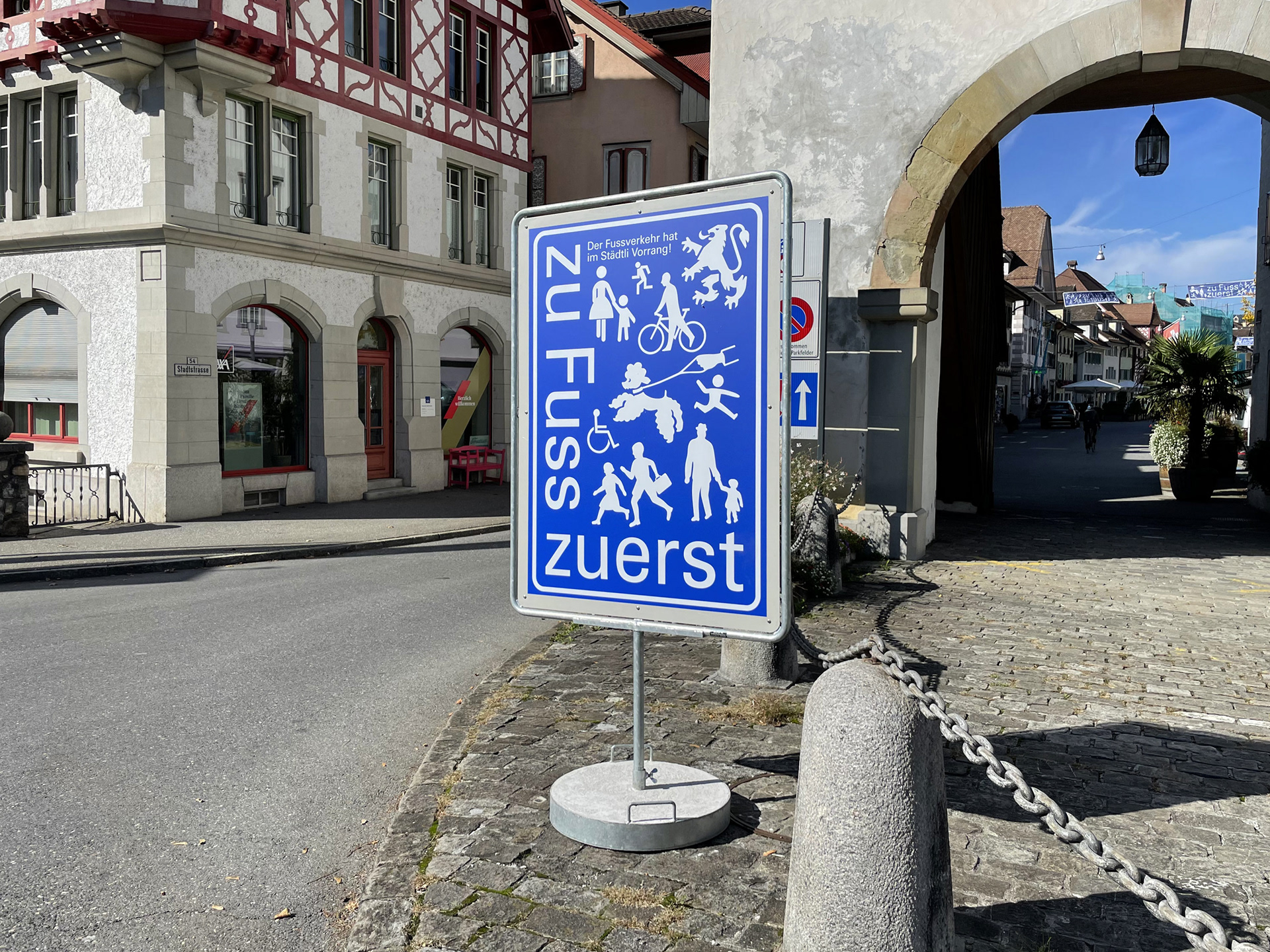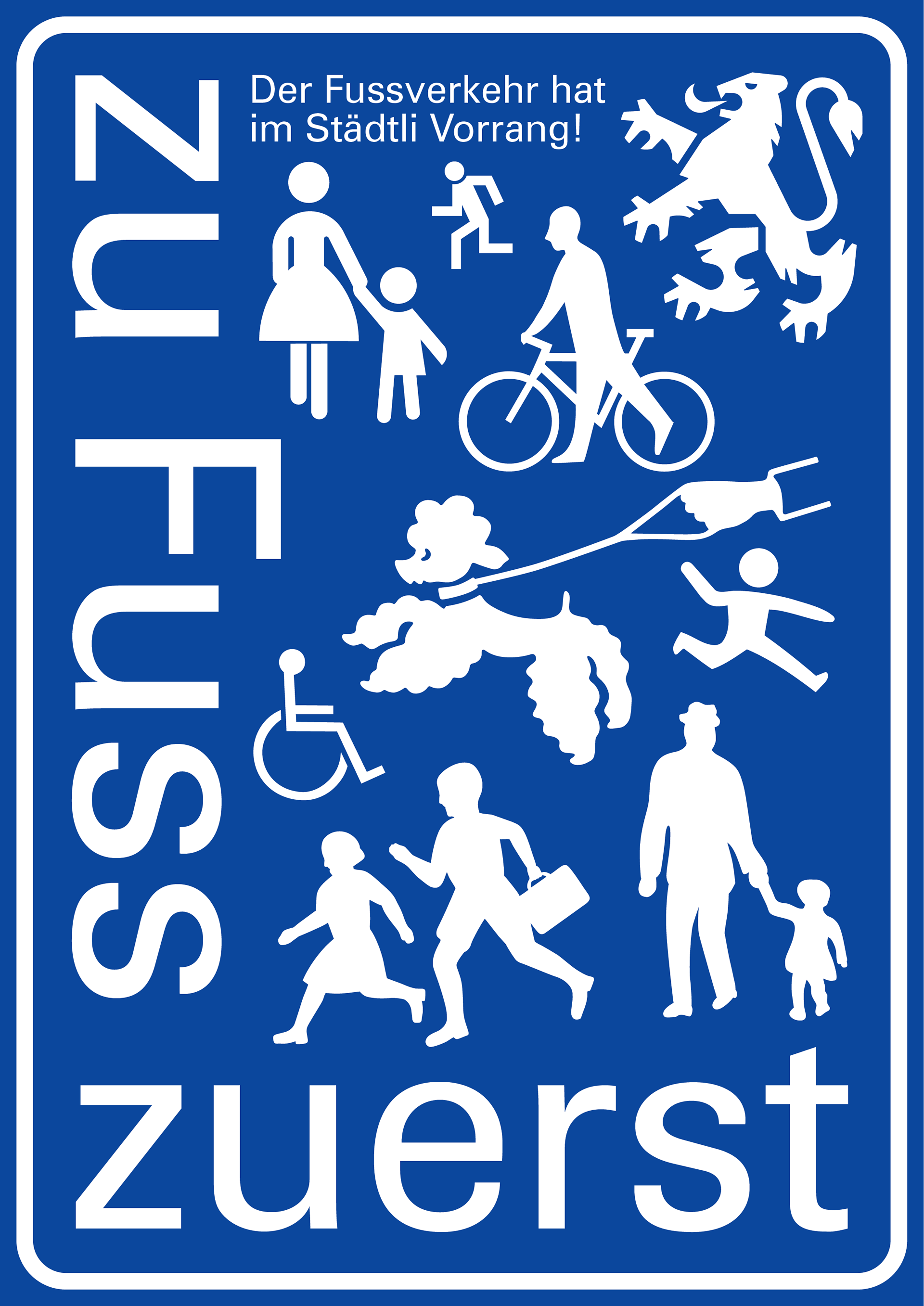 Poster and banner for an awareness campaign by the city of Sempach for pedestrian traffic in its city centre